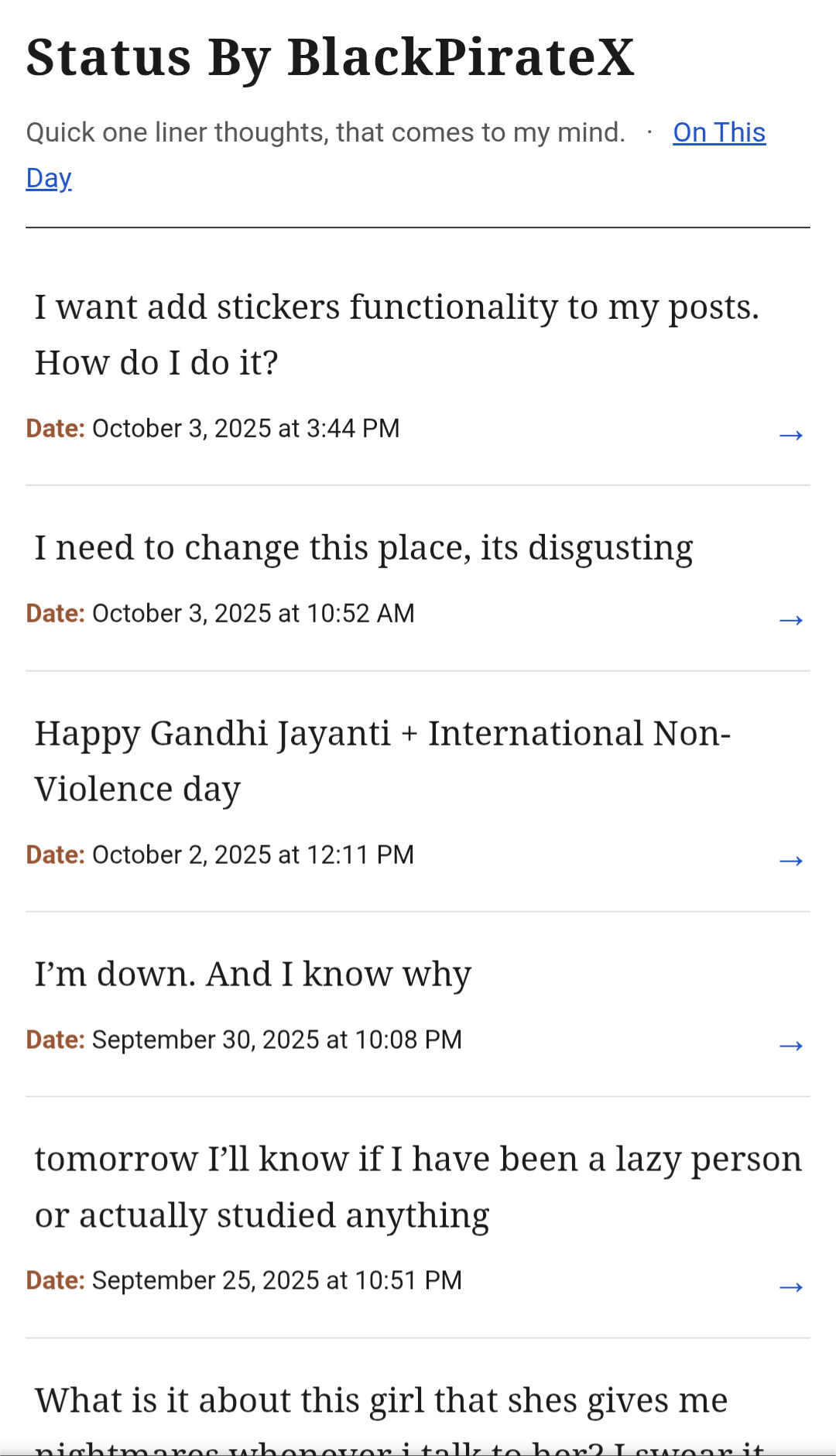 Uploaded some of my previous dream entries. Check it out: https://blog.blackpiratex.com/tags/dream/