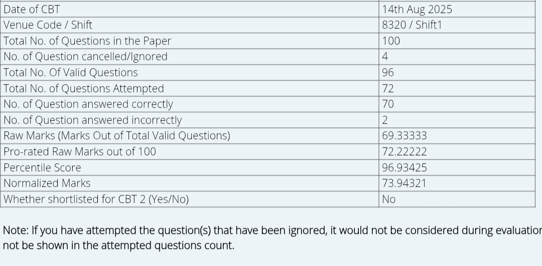 Even after getting 96th percentile im still not shortlisted for cbt 2. Thats competitive exam for you.