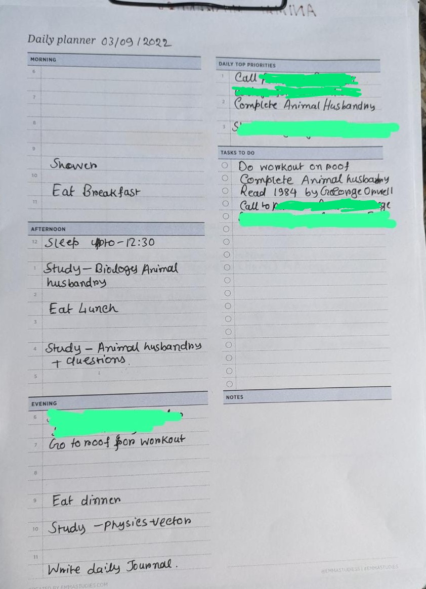 Made daily planner on paper today: let’s see how much I follow this planner.
